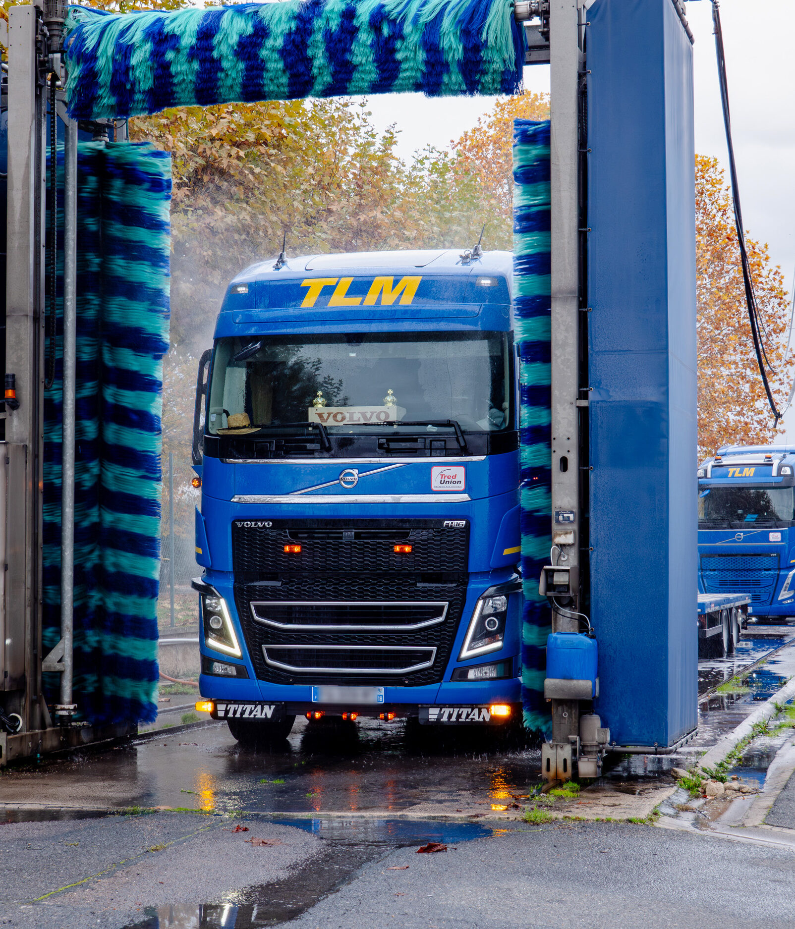 Lavage poids lourds et utilitaires avec pré-lavage haute pression et piste à rouleaux, pour un entretien optimal de vos véhicules.